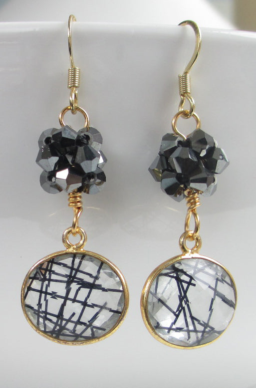 Rutilated quartz and crystal earrings
